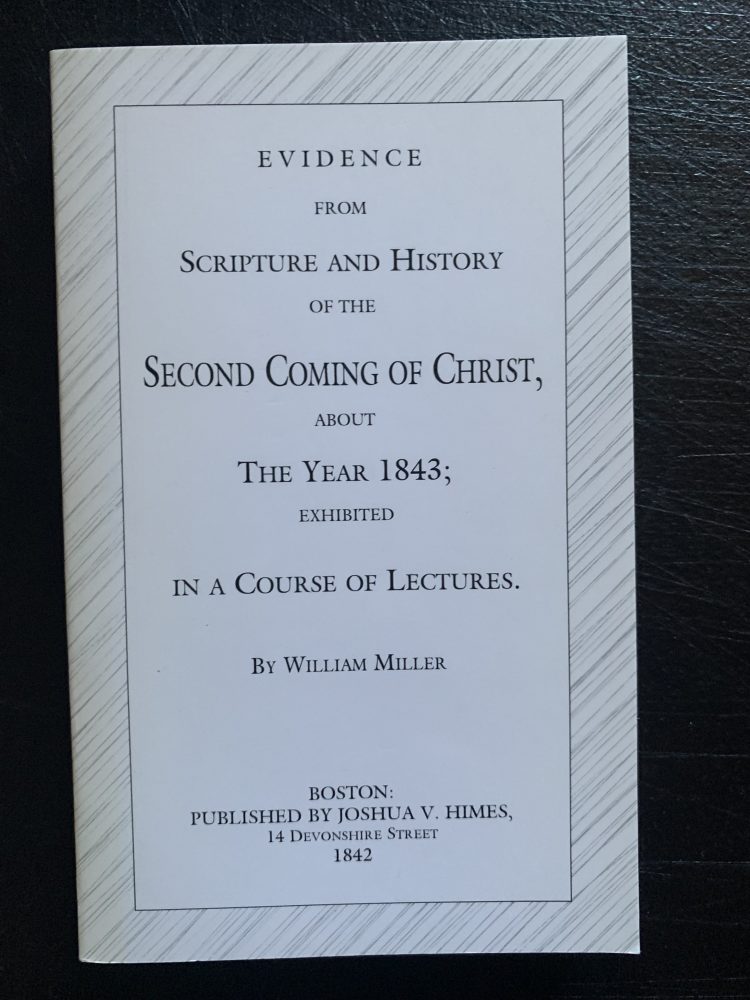 EVIDENCE FROM SCRIPTURE AND HISTORY OF THE SECOND COMING OF CHRIST, THE YEAR 1843; EXHIBITED IN A COURSE OF LECTURES. By: William Miller. Boston: published. By: Josiah V. Himes. 14 Devonshire street 1842.